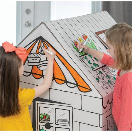 Az XL méretű játszóház ösztönzi a célirányos szerepjátékot, a nyelvi fejlődést és a mesemondást, miközben a gyerekek kifestik, díszítik és személyre szabják a saját terüket.
