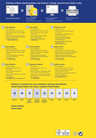 Etikett, univerzális, 63,5x42,3 mm, ovális, AVERY ZWECKOFRM, 180 etikett/csomag