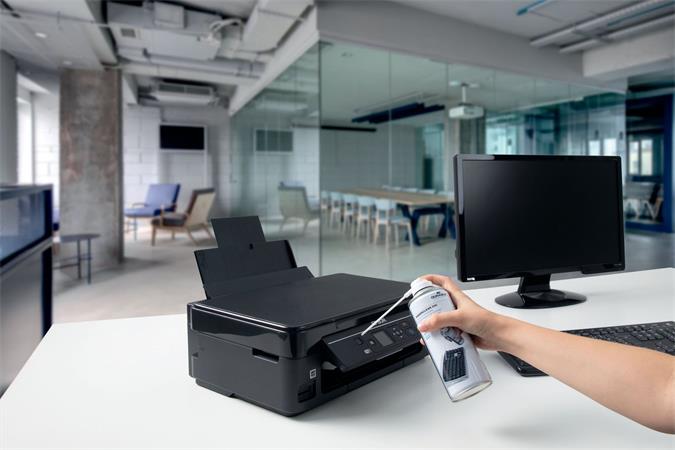 Sűrített levegős tisztító praktikus szórócsővel, a legjobb hatás akkor érhető el, ha a tisztítandó felületet kb. 20 cm távolságról rövid fúvásokkal permetezzük